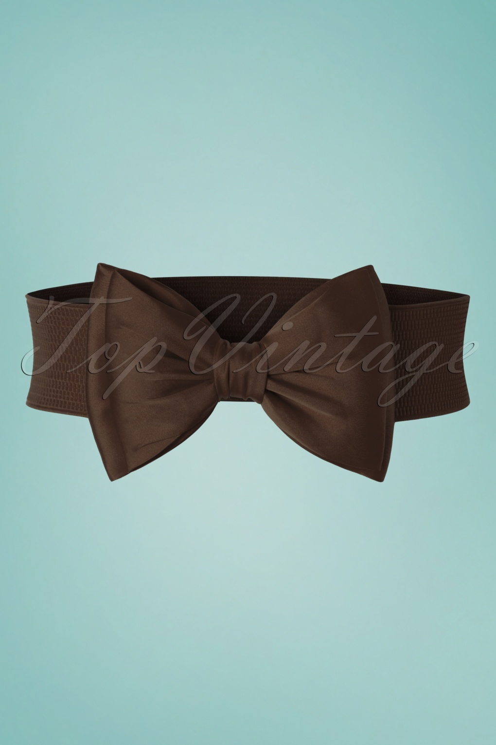 Dieser 50s Bella Bow Belt in Dark Brown ist ein süßer Gürtel und eine Ergänzung für jedes Outfit! Dieser wunderschöne, breite Stretch-Gürtel wird in der Taille getragen für eine schönes Silhouette, oh la la! Hergestellt aus elastischem Band in Dunkelbraun mit einer großen auffälligen Schleife die ihre Form behält. Perfekt in Kombination mit unseren Kleidern und Röcken! * Feste Schleife * Wird mit 2 Druckknöpfen verschlossen