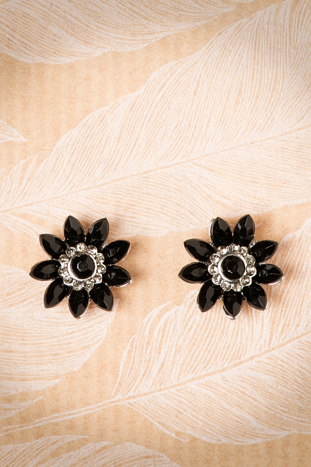 Audrey Jet Flower Ohrstecker in Schwarz und Silber