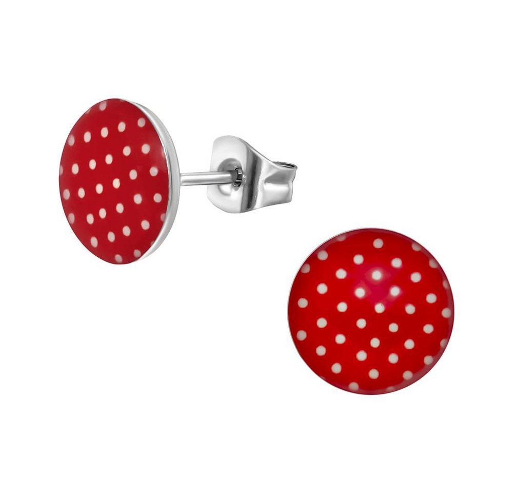 BUNGSA Ohrring-Set Ohrstecker Rot mit weißen Punkten Rockabilly 10mm aus Edelstahl Damen (1 Paar (2 Stück), 2-tlg), Ohrschmuck Ohrringe