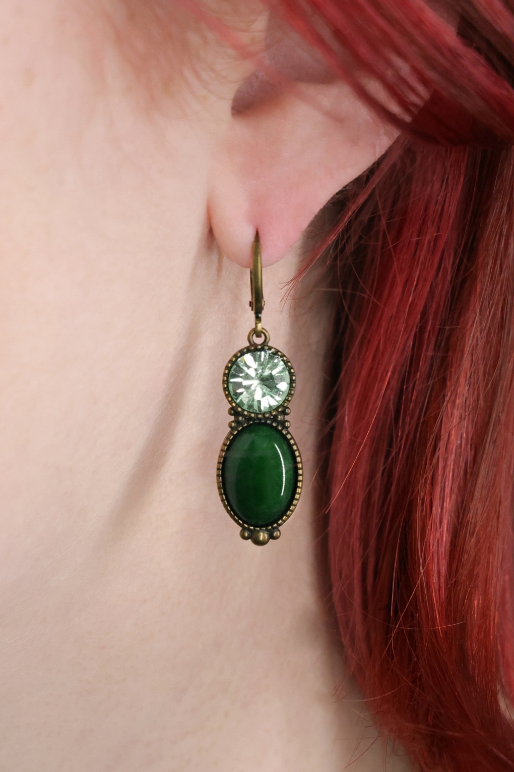 These Tosca earrings are destined to become your new favourites! These short drop earrings are made of gold-plated brass with a dark finish and flaunt a shiny, dark-green rhinestone and a glass stone with a dainty finish. When in doubt, put some bling on it! * Drop earrings * Gold-plated brass * Lever-back fastening with matte gold plating * Nickel free (hypoallergenic)