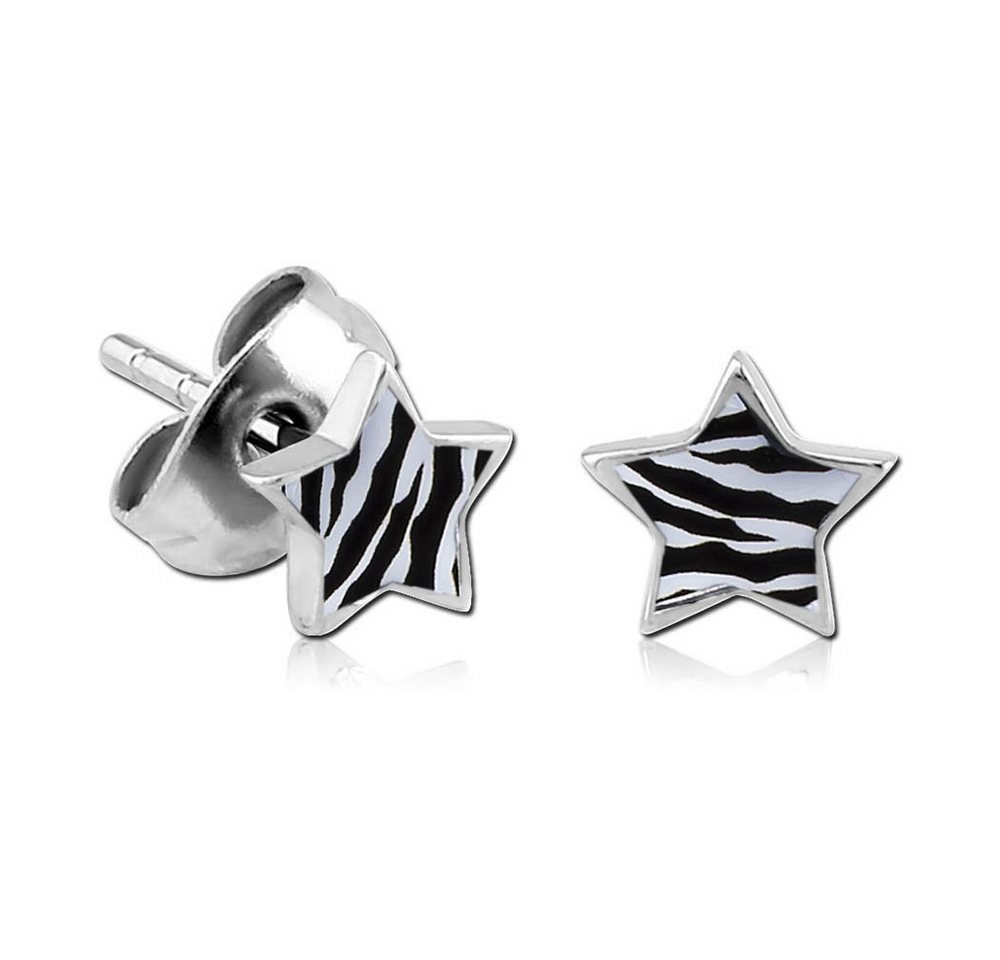 viva-adorno Paar Ohrstecker Edelstahl Sterne mit buntem Motiv Blumen Animal Print Rockabilly, Stern Ohrstecker Leopard Tiger Zebra Muster