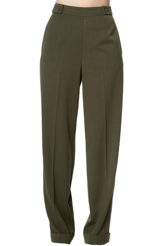 Material: 65% Polyester, 32% Viskose, 3% ElasthanVerschluss: Haken und Öse, Reißverschluss- zwei seitliche Taschen- Zierklappen- Stoffüberzogene Knöpfe- hoch geschnittener Bund- weit geschnittene Beine