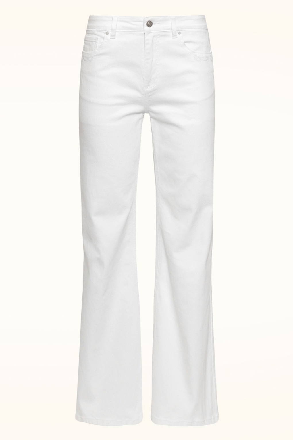 Klassischer Schnitt, moderner Look: Diese Schlagjeans verbindet zeitlosen Denim mit einer modernen Note. Das Modell im 5-Pocket-Stil hat weite, ausgestellte Beine, die eine elegante Silhouette zaubern und schicke Retro-Vibes versprühen. Es ist aus einem festen, aber dennoch geschmeidigen Denim-Baumwollmix in Weiß gefertigt, der dank eines geringen Stretchanteils herrlich angenehm zu tragen ist. * Modell mit hoher Taille * Klassischer 5-Pocket-Stil * Mit Gürtelschlaufen * Reißverschluss und Knopf vorne * Lange ausgestellte Hosenbeine