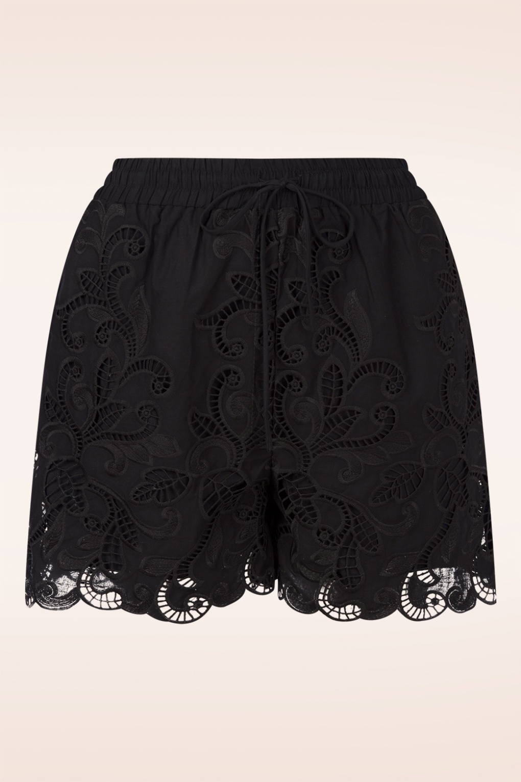 Pretty details, endless summer vibes! Worn high at the waist, these Luna shorts feature an elasticated waistband with a drawstring and an all-over broderie anglaise pattern with scalloped piping. Made of breezy 100% cotton which making them perfect suitable for the coming season. * High waist shorts * Lined * Elasticated waistband with a drawstring * Scalloped piping