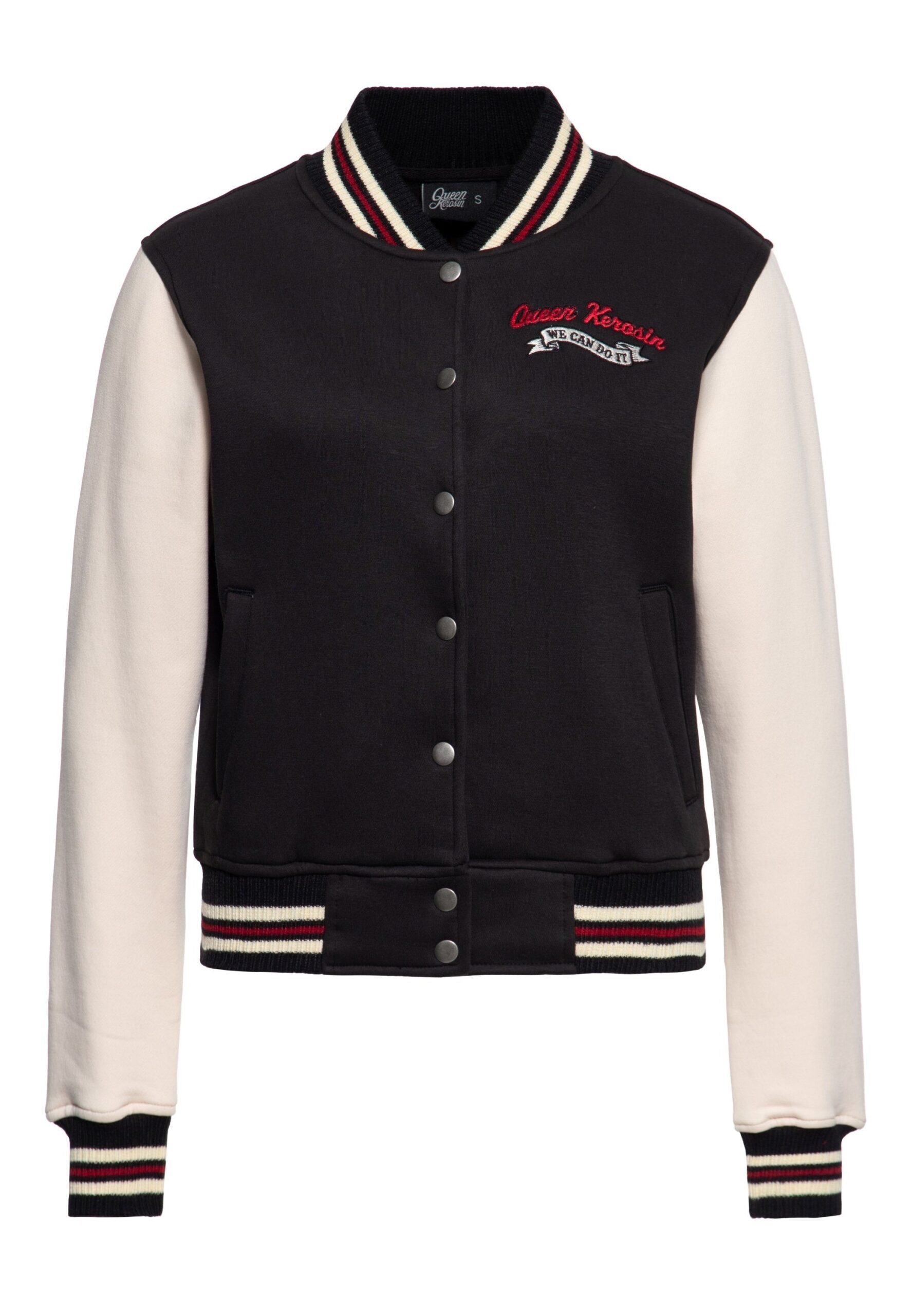 Mit der Queen Kerosin College-Jacke im ‚We Can Do It!‘ Design sendest du eine klare Botschaft in die Welt: Du bist stark, selbstständig und bereit für jede Herausforderung. Dieses Kleidungsstück ist mehr als nur ein modisches Statement; es ist ein Bekenntnis zu weiblicher Stärke und Entschlossenheit. Die Kombination aus kontrastfarbenen Ärmeln und elastischen Rippbündchen verkörpert die perfekte Mischung aus femininem Flair und sportlicher Eleganz. Dabei sorgen die praktischen Eingrifftaschen und die metallene Druckknopfleiste für eine Mischung aus Funktionalität und zeitloser Schönheit. Das Herzstück der Jacke ist jedoch das unübersehbare ‚We Can Do It!‘ Motiv. Es zeigt, dass du eine Frau bist, die weiß, was sie will und wie sie es bekommt – eine moderne Heldin in einer nicht immer einfachen Welt. Zieh diese Jacke an und verwandle dich in eine Rockabilly-Queen, die der legendären Rosie the Riveter alle Ehre machen würde. In dieser Jacke fühlst du dich nicht nur stark und unabhängig, sondern siehst dabei auch noch umwerfend aus.
