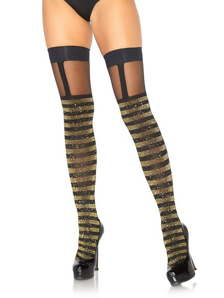 Leg Avenue Strapsstrümpfe Goldgestreifte Glitzerstrümpfe