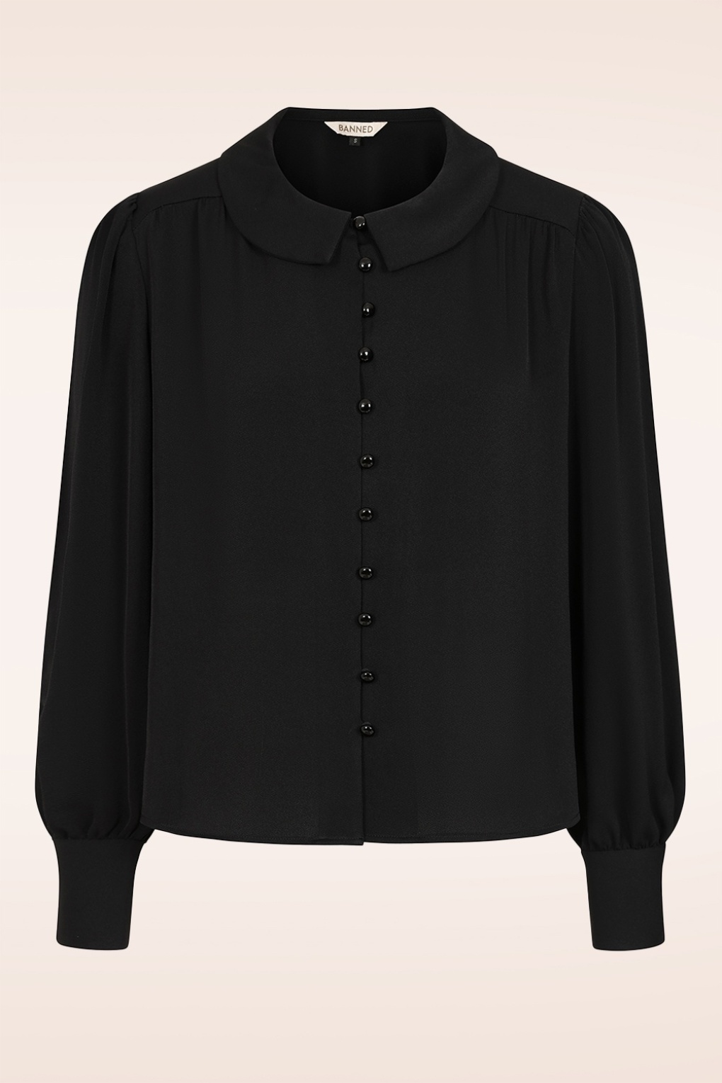 Das Geheimnis guten Stils? Sich in seiner Kleidung wohlfühlen! Diese wunderschöne Bluse ist aus einem festen schwarzen Stoff (nicht dehnbar) gefertigt, der herrlich angenehm zu tragen ist. * Spitzkragen * Lange Puffärmel mit Manschetten * Knopfleiste * Ideale Länge auch in Kombination mit Low-Waist-Hosen