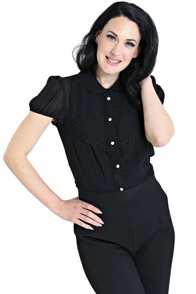 Hell Bunny Blusenshirt Taffy Schwarz Bubikragen