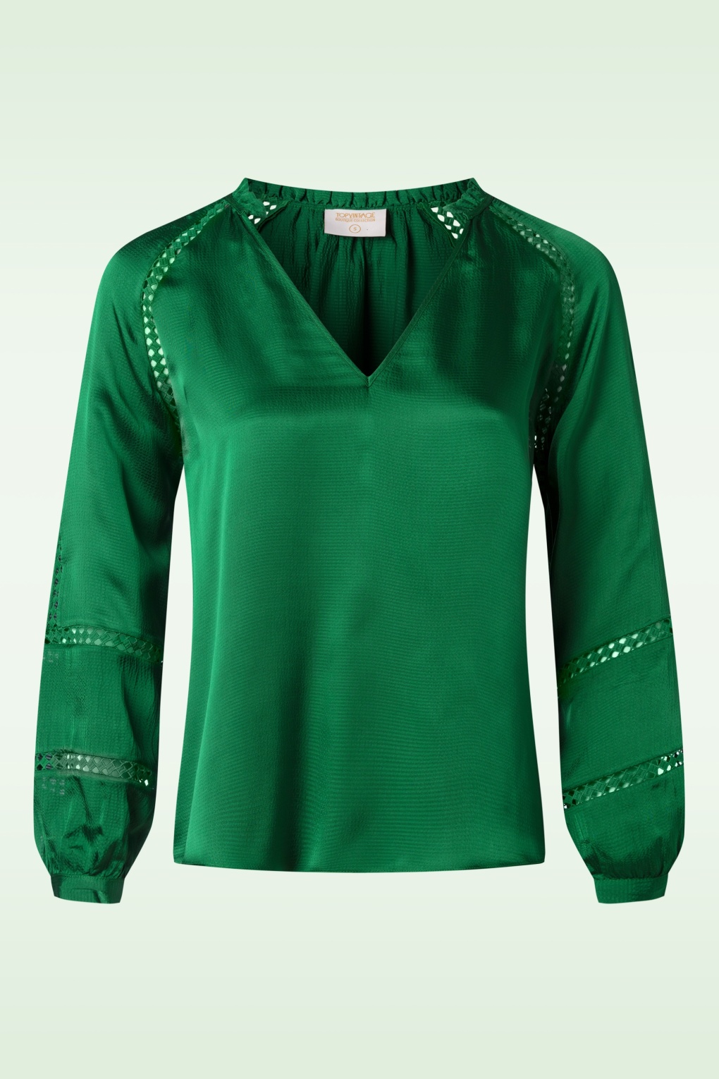 “Wild heart, gypsy soul!“ Melissa wurde von unseren Inhouse Designern entworfen und ist exklusiv erhältlich bei Topvintage! Sie hat einen V-Ausschnitt mit zierlichen Rüschen und elegante, lange Ärmel. Gefertigt aus einem nicht dehnbaren, aber angenehmen Stoff in Smaragdgrün mit der Optik und Haptik von Satin und Lochmuster-Details. * Loose-fit Schnitt * V-Ausschnitt * Rüschen * Lange Puffärmel mit schmalen Manschetten * Lang genug, um mit einer normalen Hose getragen zu werden * Exklusiv erhältlich bei Topvintage