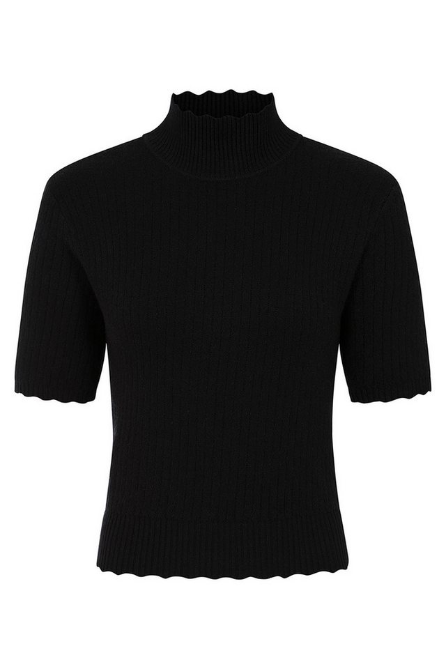 Banned Kurzarmpullover Jane Sweet Scallop Schwarz Vintage Wellenschnitt