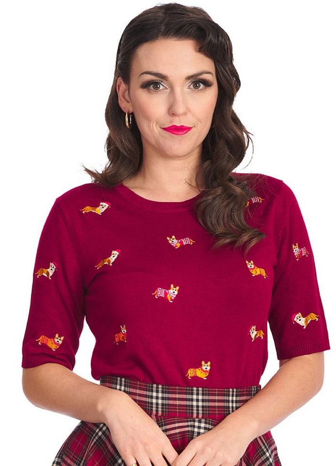 Banned Strickpullover The Queens Corgi Burgunder Vintage Rockabilly Hunde
