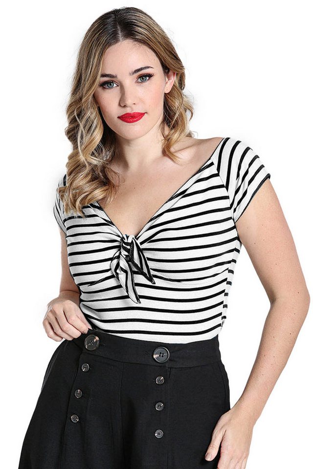 Hell Bunny Shirttop Dolly Schwarz Weiß Gestreift Schleife Retro Vintage Rockabilly