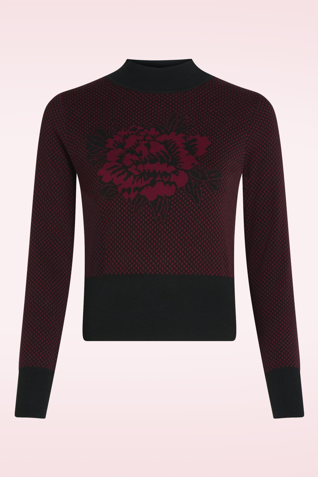 Zarte Blüten, ausdrucksstarke Vibes! Dieses fein gestrickte Oberteil ist unglaublich bequem und sieht umwerfend aus. Das langärmelige Modell mit Stehkragen ist auf der Vorderseite mit einem hübschen Blumenmotiv versehen, das für einen Hauch von Retro-Flair sorgt. Das Modell ist aus 100 % Bio-Baumwolle gefertigt, die sich herrlich weich auf der Haut anfühlt und atmungsaktiv ist. * Hoher Kragen * Lange Ärmel * Ideale Länge auch in Kombination mit Low-Waist-Hosen