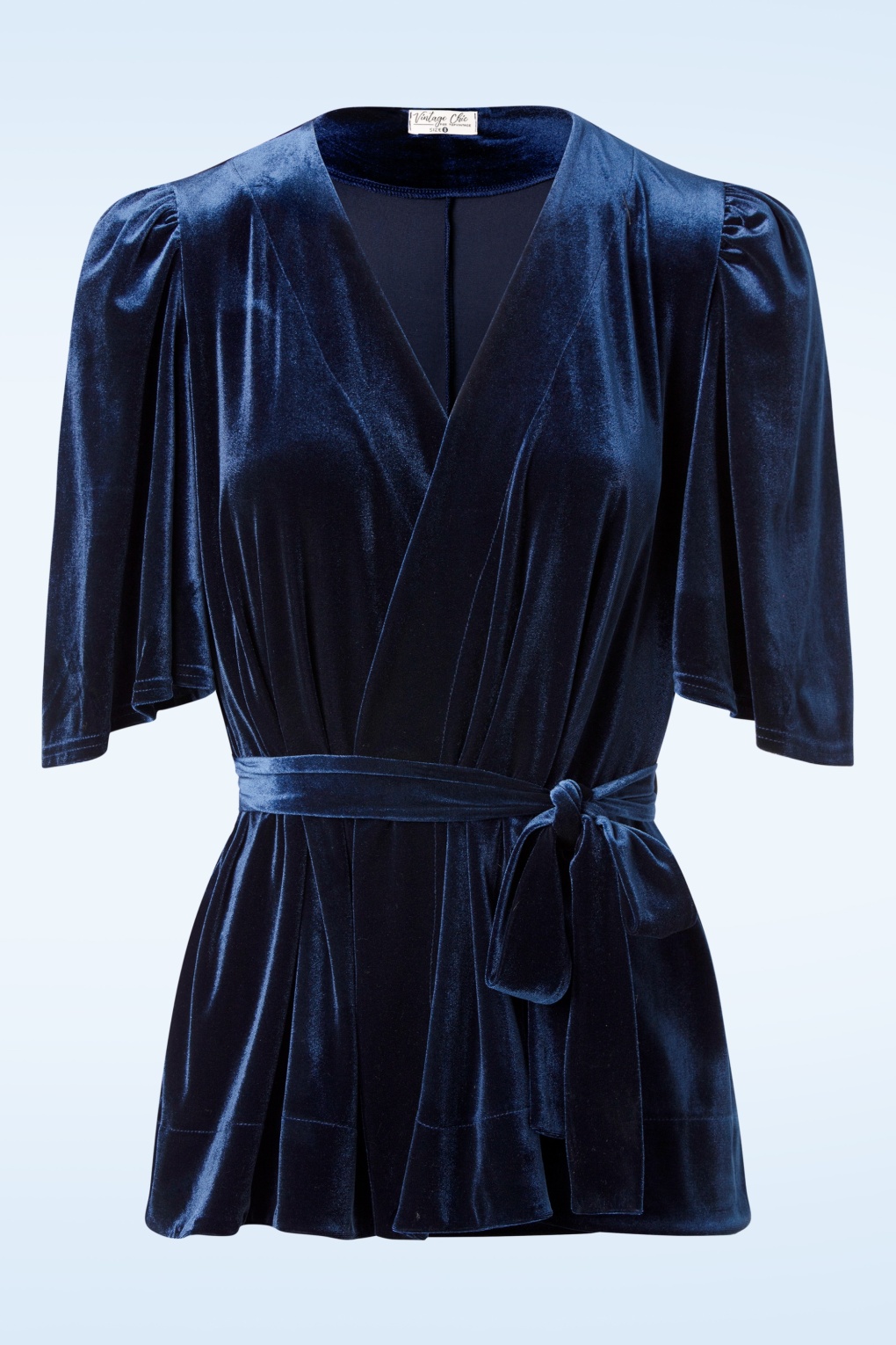 Vicky ist der perfekte Hingucker, der jedes Outfit vollendet! Im Licht schimmert sie so schön, denn sie wurde aus einem dehnbaren, marineblauen Samtstoff gefertigt. Der abnehmbare Bindegürtel und die hübschen Schmetterlingsärmel machen das Bild komplett. Trage sie als Set mit der passenden Samt Hose für einen festlichen Look! * Kurze Schmetterlingsärmel * Abnehmbarer Bindegürtel * Lang genug, um mit einer normalen Hose kombiniert zu werden * Exklusiv bei Topvintage erhältlich