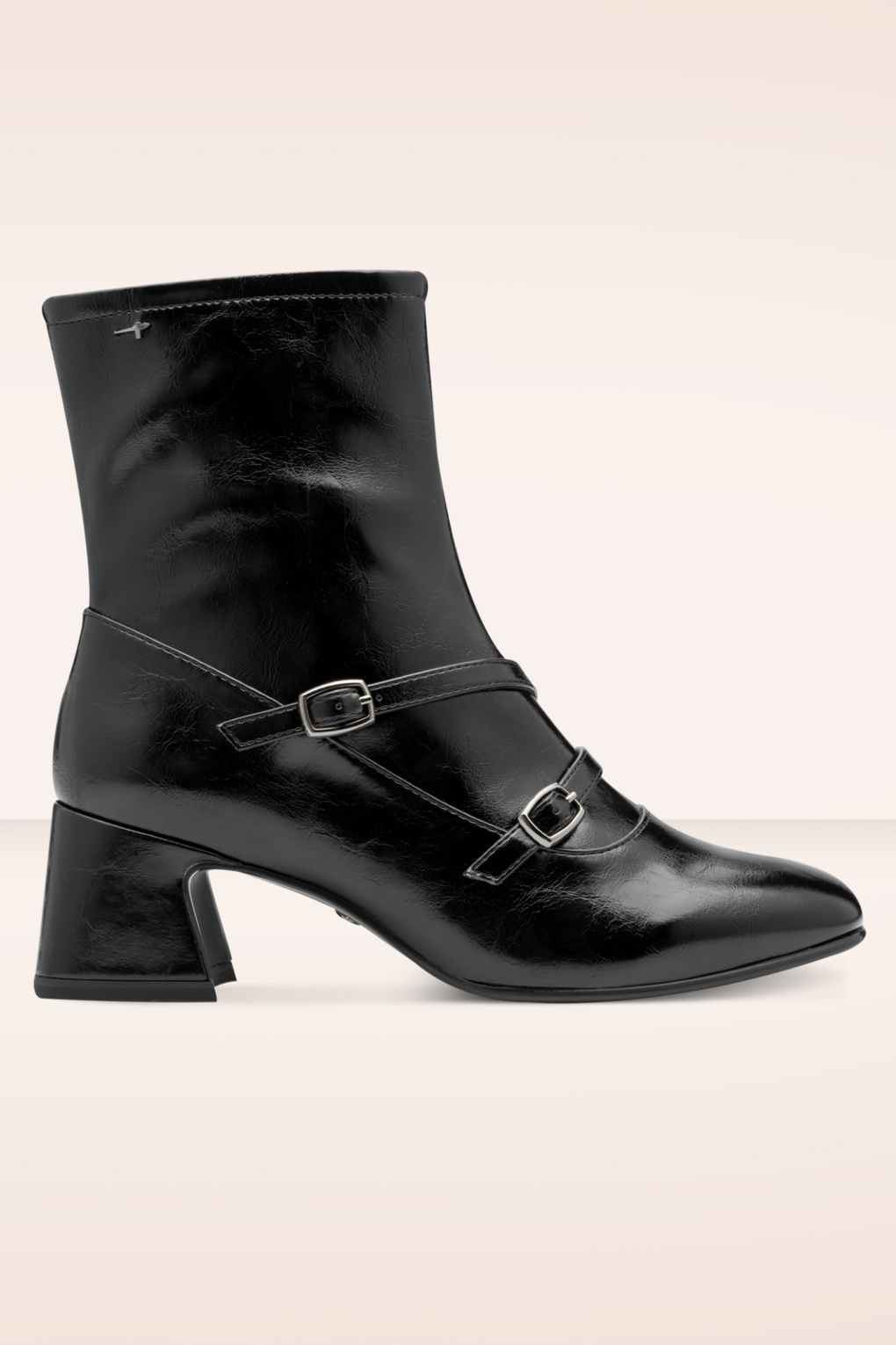 „Shiny black and swinging back“ Diese Schätzchen wurden mit einem stabilen Blockabsatz und einem bequemen (Touch-it) Fußbett versehen. Gefertigt aus ultraglänzendem, schwarzem veganem Leder – veredelt mit silberfarbenen Zierschnallen. * Glänzender Finish * Stabiler Blockabsatz * Reißverschluss an der Innenseite * Comfy (Touch-it) Fußbett * Anti-Rutsch Sohle und Absatz * Vegan approved