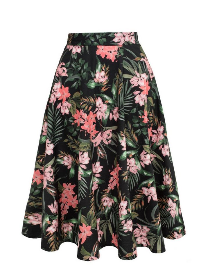 Hell Bunny A-Linien-Rock Calypso 50’s Tropical Swing Skirt Vintage Blumenmuster Retro Tellerrock