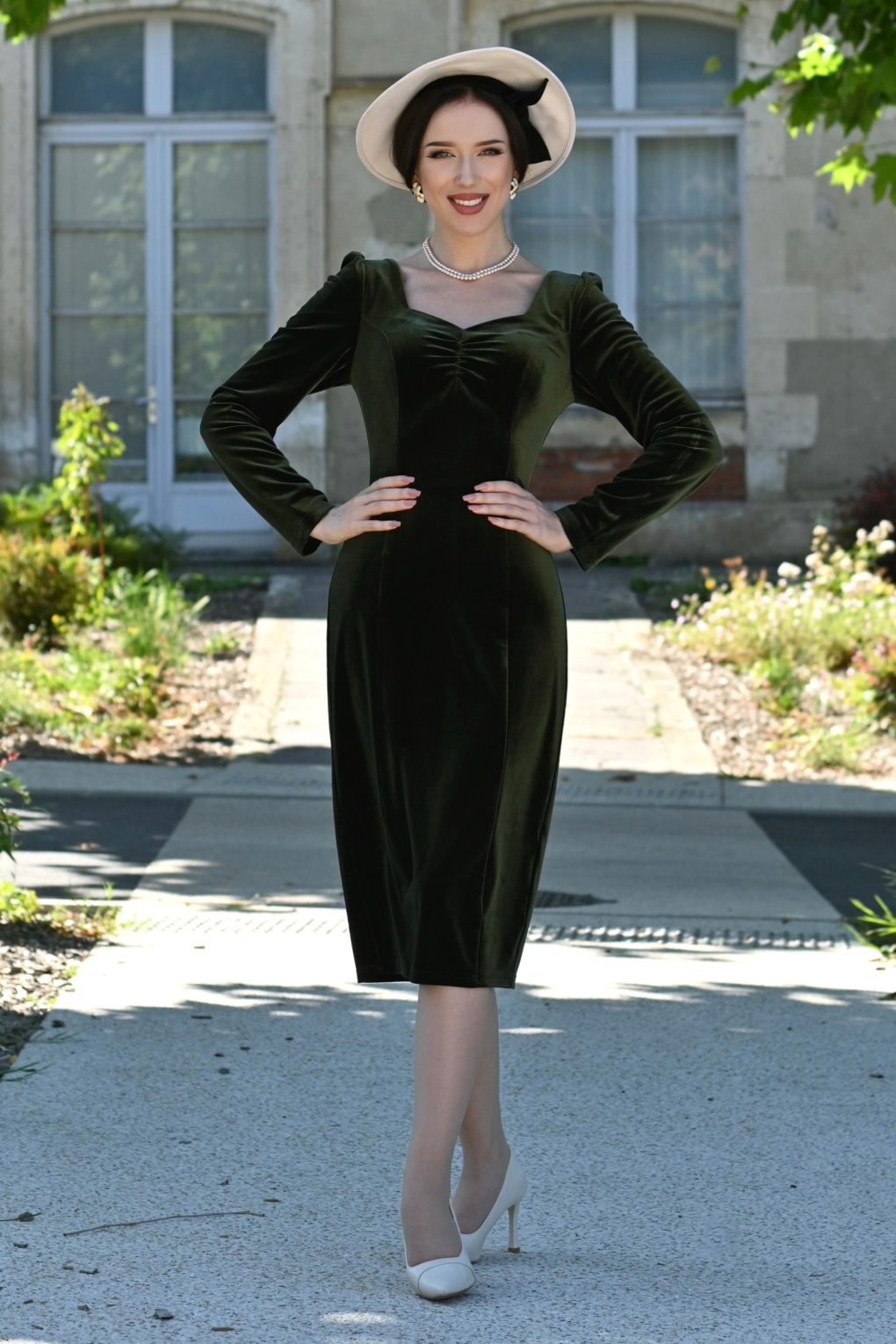 Carmen Etuikleid in Dunkelgrün – Samtoptik