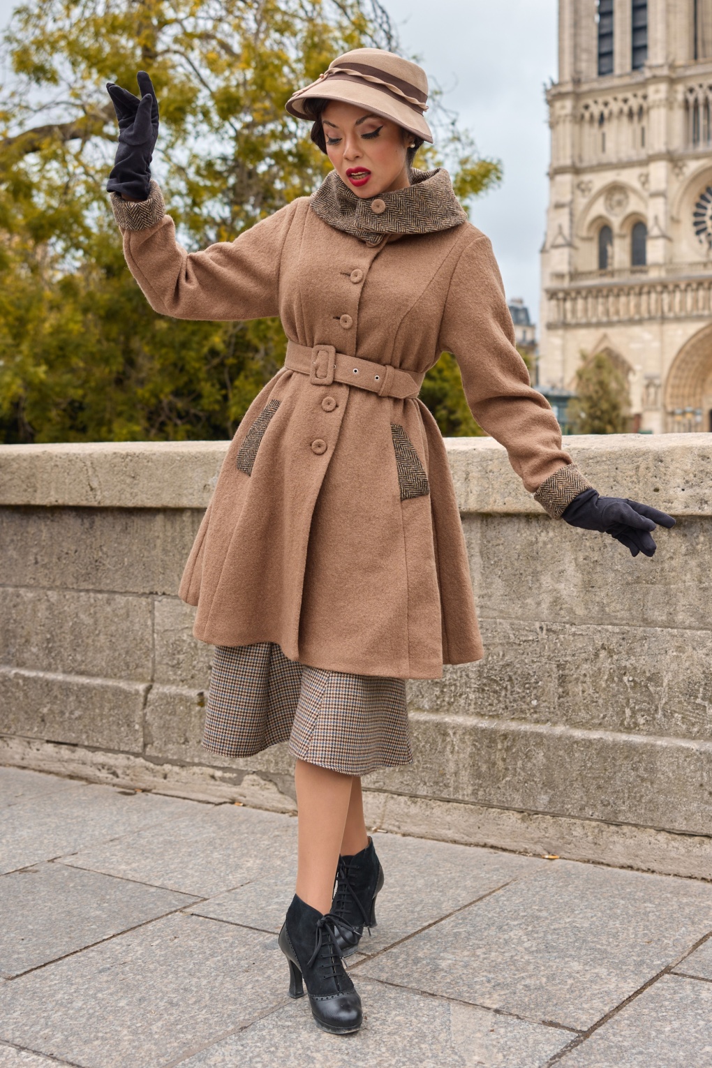Eine Hommage an zeitlose Weiblichkeit: bei diesem Modell trifft ein softer Schnitt auf die Romantik des Pariser Winters. Der Wollmantel Adia Sadie aus der neuen Kollektion von Miss Candyfloss wurde von der herausragenden französischen Modedesignerin Marie-Louise Carven inspiriert, die in den 1940er und 1950er Jahren Pionierarbeit leistete und die Modegeschichte nachhaltig prägte. Das langärmelige Modell hat einen großen Kragen, mit dem du einen hohen Ausschnitt zaubern kannst, einen Gürtel, um deine Taille zu betonen (wenn du willst), und praktische Taschen auf der Vorderseite. Es ist aus einem robustem, aber dennoch weichen und besonders warmen, sandfarbenen Material aus 100 % Wolle gefertigt, das dich in der kalten Jahreszeit wunderbar wärmt. * Ausgestellter Schnitt * 100 % Wolle * Gefüttert * High collar * Lange Ärmel * Knopfleiste vorne * Abnehmbarer Gürtel * Taschen auf der Vorderseite * Endet bei einer Körpergröße von 1,70 m über dem Knie