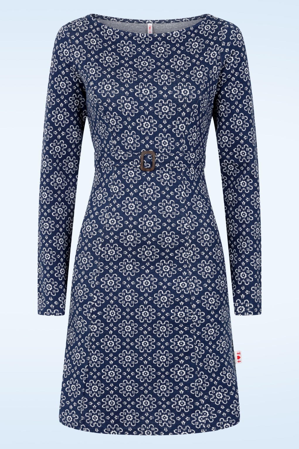 Elegante Blüten treffen auf gemütlichen Strick. Dieses superbequeme Kleid aus einer fein gestrickten und elastischen Bio-Baumwollmischung in Blau besticht durch sein Blumenmuster und ein hübsches Gürtel-Detail. * Ausgestellter Schnitt * Lange Ärmel * Fest vernähtes Gürteldetail mit Schnalle * Kein Reißverschluss, keine Knöpfe: einfach reinschlüpfen und los geht’s! * Endet bei einer Körpergröße von 1,70 m knapp über dem Knie