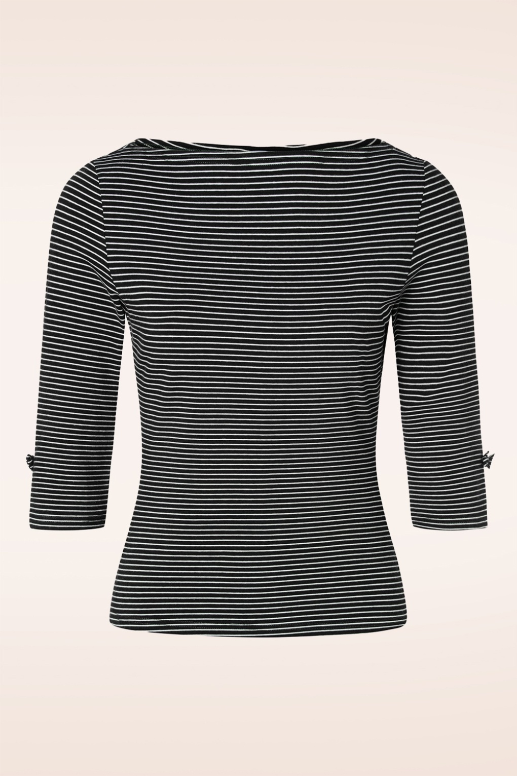 Elegant und niedlich ist dieses Simply Stripe Top in Schwarz! Einfach, aber dennoch besonders durch seine lieblichen Details. Das Top hat einen hübschen ‚Slash‘-Ausschnitt und Ärmel mit kleinen Schleifchen an den Säumen, einfach süß! Hergestellt aus herrlich weichem, dehnbarem, schwarzem Baumwolle mit weißen Streifen, die auch nach mehreren Waschgängen perfekt passen werden. Ein vielseitiges, schickes Top, das in keinem Kleiderschrank einer echten Vintage-Lady fehlen darf 😉 * ‚Slash‘-Ausschnitt * 3/4 Ärmel * Feste Schleifchen * Lang genug, um zu einer normalen Hüfthose zu tragen