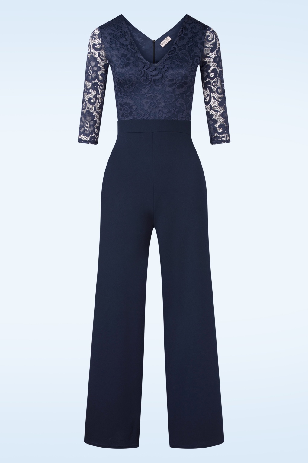 Exklusiv bei Topvintage ~ Maribelle Spitze Jumpsuit in Marineblau.
