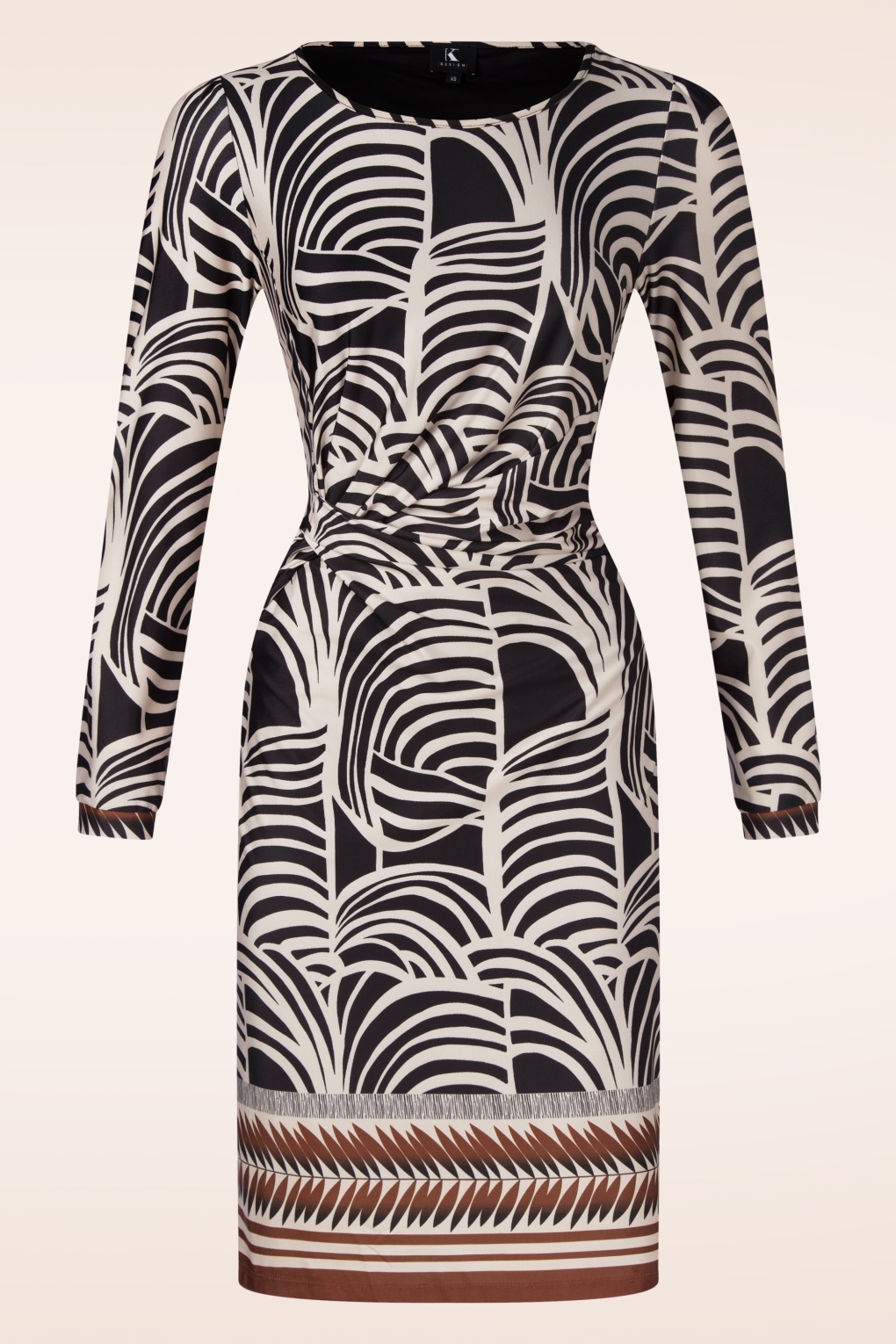 Veronique ist einfach Spitzenklasse! Dieses Kleid mit leicht ausgestelltem Rock ist aus einem anschmiegsamen, elastischen und glatten Stoff gefertigt. Es besticht durch einen schwarz-weißen Print und braune Details am Saum. * Leicht ausgestellter Schnitt * Lange Ärmel * Gefüttert * Kein Reißverschluss, keine Knöpfe: einfach überziehen und los geht’s! * Endet bei einer Körpergröße von 1,70 m knapp über dem Knie