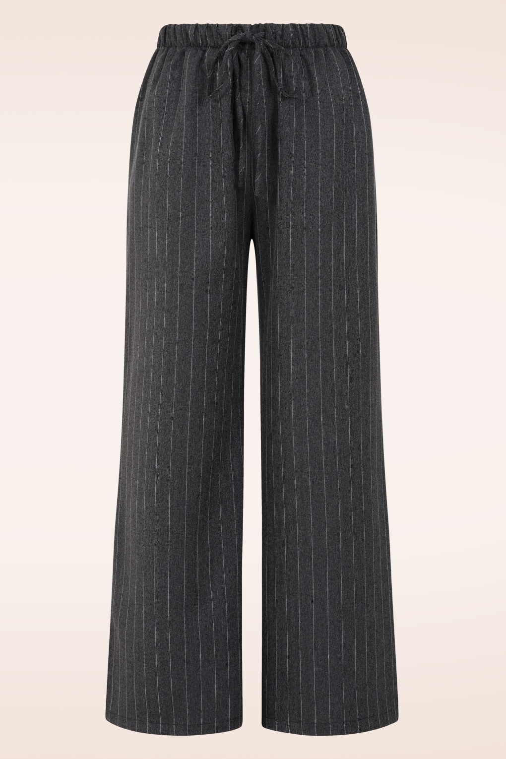 Perfekte Nadelstreifen sind einfach immer ein Hingucker! Mit dieser zeitlosen dunkelgrauen Hose mit dezenten weißen Nadelstreifen sorgst du für Aufsehen. Die hohe Taille und die geraden, weiten Hosenbeine kreieren einen eleganten, schlichten Look, der professionell und stylisch zugleich ist. Das Modell ist aus einem festen und dennoch geschmeidigen Mischgewebe gefertigt, das angenehm zu tragen ist und sich sowohl für das Büro als auch für ein elegantes Freizeitoutfit eignet. * Hohe Taille * Elastischer Bund mit Kordelzug * Lange, weite Hosenbeine