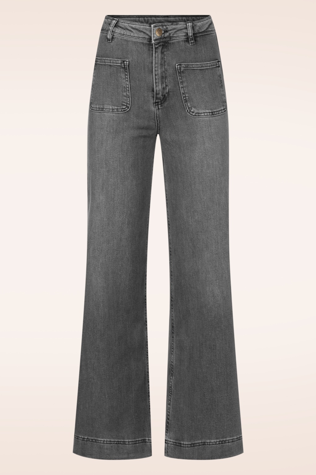“Serving seventies sass in soft flares; grey, groovy, and ready to strut!“ Die hochtaillierte Maureen hat vorne aufgenähte Taschen und lange weit ausgestellte Hosenbeine, die deine Beine endlos erscheinen lassen. Sie wurde aus einem geschmeidigen, leicht dehnbaren, grauen Baumwollmix gefertigt und trägt sich herrlich bequem. * High Waist * Gürtelschlaufen * Reiß- mit Knopfverschluss vorne * Aufgenähte Taschen vorne und hinten * Lange weite Hosenbeine mit Schlag
